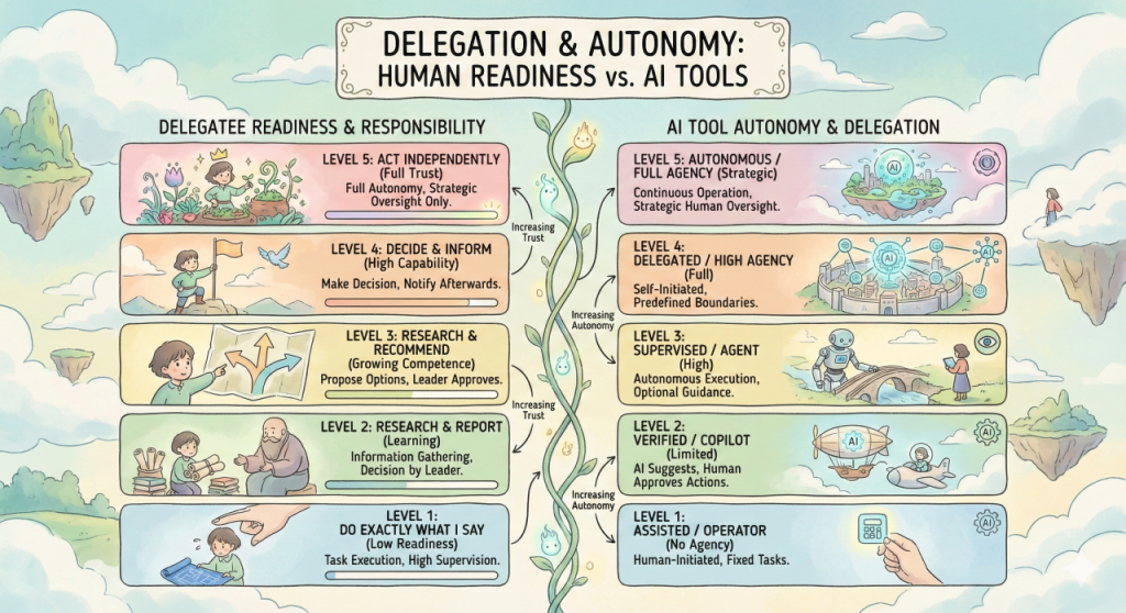 A rough comparison of the levels of autonomy in the automobile ADAS systems and the levels of delegation also have a positive and close correlation.