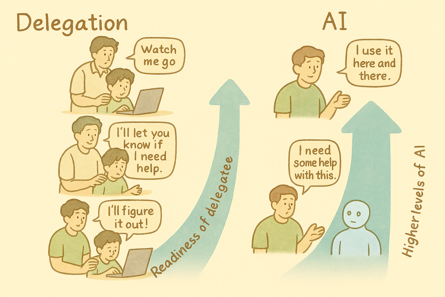 The lightbulb moment was that the same delegation model may be applied with you start working with AI enabled tools.